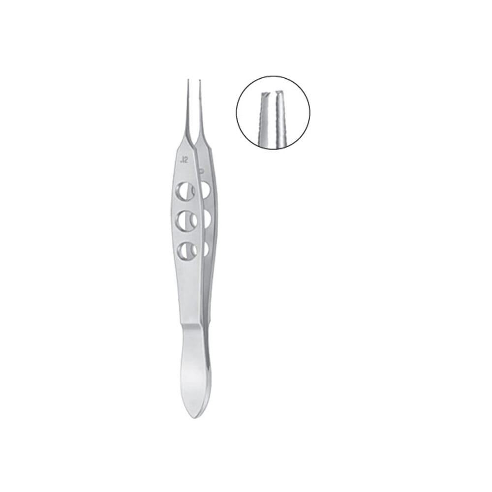 Bonaccolto Conjunctiva Forceps, longitudinally serrated jaws, with cross serrations at tips, 1.7mm wide